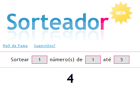 Foi usado um Sorteador Online para sortear o numero do participante que neste caso é o nº4, como prova: