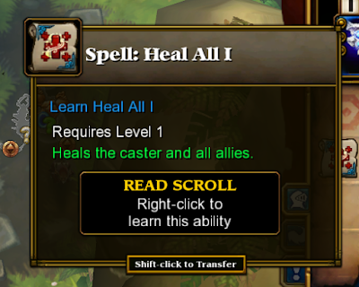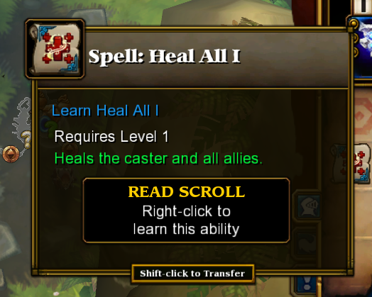 Estas skills (spells) consomem um espaço na skillbar se forem skills ativas, se forem passivas o bonus é dado passivamente sem ser preciso ativação. Na imagem esta um spell de nivel 1, que da um pequena heal ao usuário e aos allies, obviamente o efeito seria maior se o spell fosse de nivel 2 e por ai adiante. Estes spells uma vez aprendidos so podem ser removidos, perdendo assim o spell.